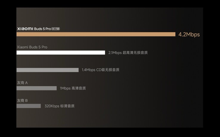 Interessant ist vor allem die drahtlose Verbindung, denn Xiaomi unterstützt nicht nur den modernen LC3-Codec, der eine besonders lange Akkulaufzeit und eine Latenz von nur 50 Millisekunden ermöglicht, sondern auch Qualcomm aptX Lossless, wodurch Musik in 24-bit bei 48 kHz mit einer Datenrate von 2,1 Mbit/s verlustfrei über Bluetooth übertragen werden kann. Eine teurere Variante der Xiaomi Buds 5 Pro kann Musik sogar über WLAN statt Bluetooth übertragen, und das mit einer Bandbreite von 4,1 Mbit/s bei 24-bit und 96 kHz.