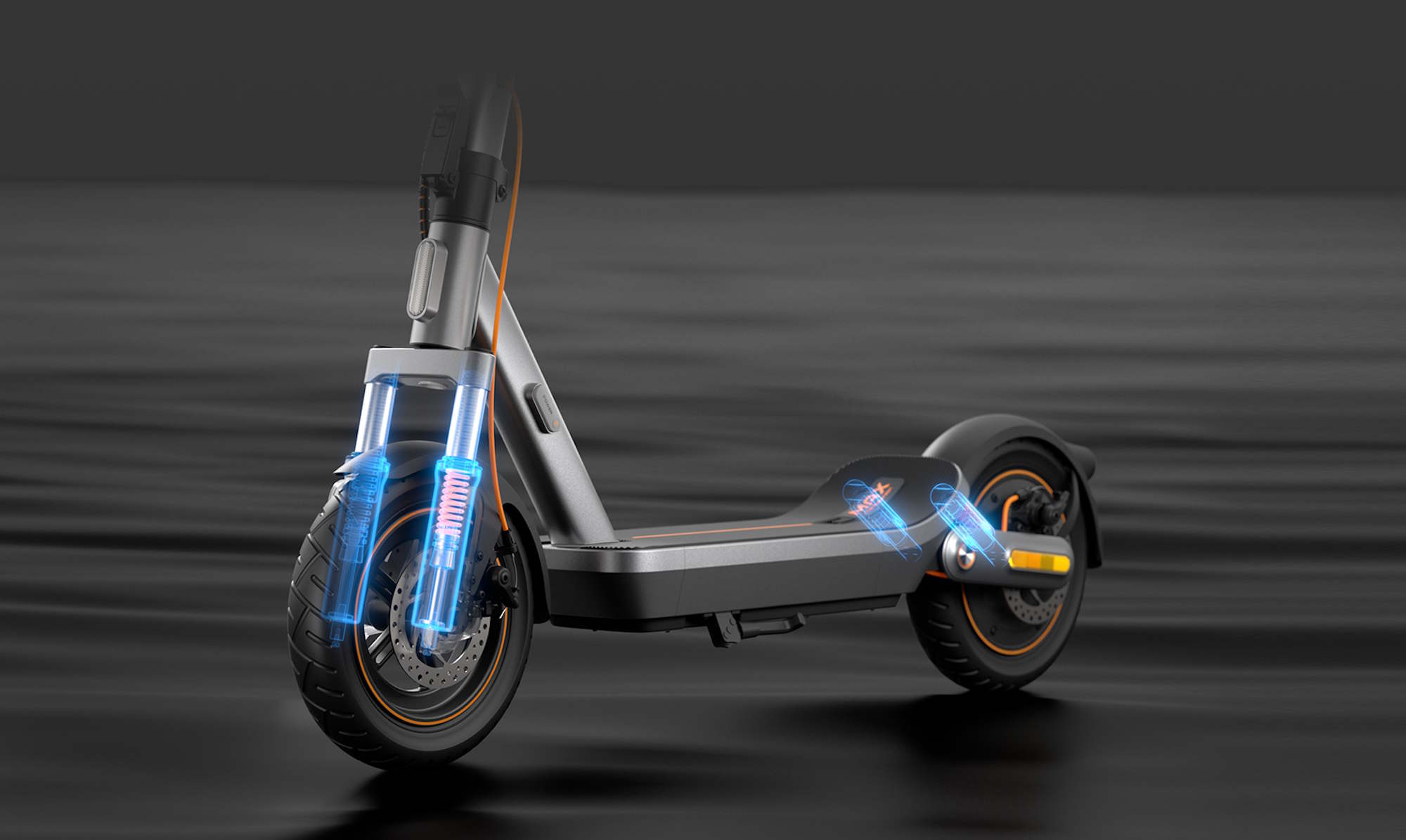 Eine Klappfunktion ist vorhanden, dann misst der E-Scooter noch 1.298 × 606,6 × 662 Millimeter und dürfte damit etwa leichter in einen Kofferraum passen. Mit einem Gewicht von 29,7 Kilogramm ist der Scooter aber nicht extrem leicht. Geworben wird mit dem Vorhandensein von 12 Zoll großen Reifen, wodurch sich sowohl eine bessere Federung als auch eine bessere Traktion ergeben soll. Verbaut ist vorne eine Federgabel mit einem 45 Millimeter langen Federweg. Dazu kommt auch am Hinterrad eine Federung. Als kompromisslosen Offroad-E-Scooter positioniert Xiaomi den Elektroroller allerdings nicht.