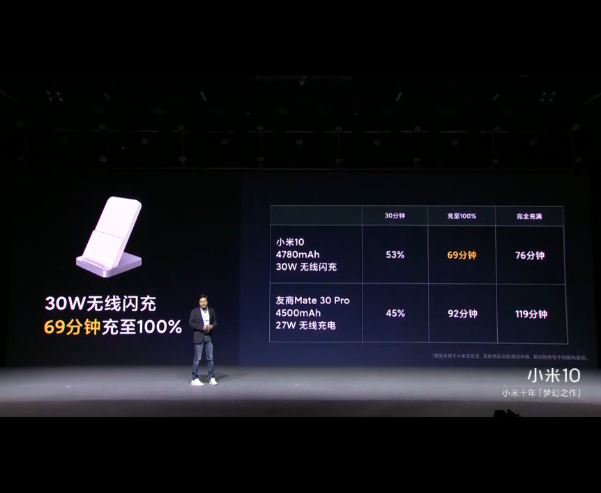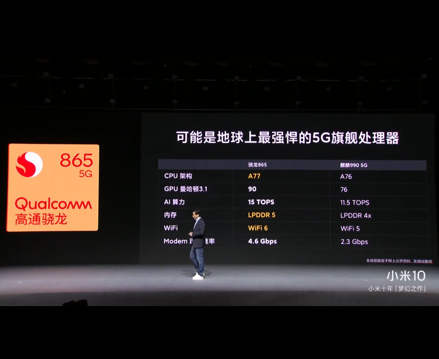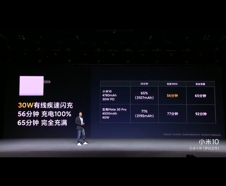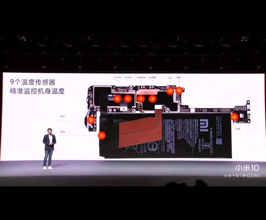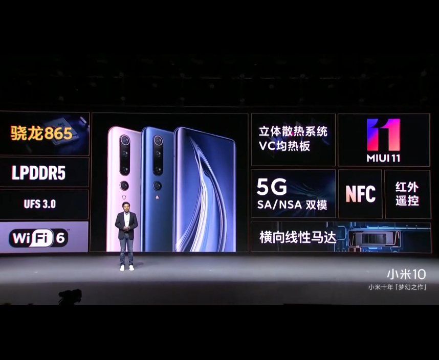 Angetrieben werden Mi 10 und Mi 10 Pro jeweils von einem Qualcomm Snapdragon 865, der beim Mi 10 von 12 GB schnellem LPDDR 5 und 256 GB UFS 3.0-Storage unterstützt wird. Das Mi 10 Pro hat mit 512 GB den doppelten Speicher an Bord. Als Kühllösung nutzen Mi 10 und Mi 10 Pro eine leistungsfähige Vapor Chamber-Kühlung. Xiaomi baut dem Mi 10 einen 4.780-mAh-Akku ein, der Fast Charging über Kabel und Wireless mit bis zu 30 Watt unterstützt. Dem Mi 10 Pro spendiert Xiaomi einen 4.500-mAh-Akku der sich sogar mit "Triple Fast Charge" und bis zu 50 Watt aufladen lässt. Das schafft nicht einmal Samsungs neuestes Topmodell Galaxy S20 Ultra. Beide Mi 10-Handys laden via Reverse Wireless Charge Zubehör wie Smartwatch oder Earbuds mit 10 Watt auf.