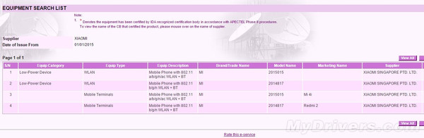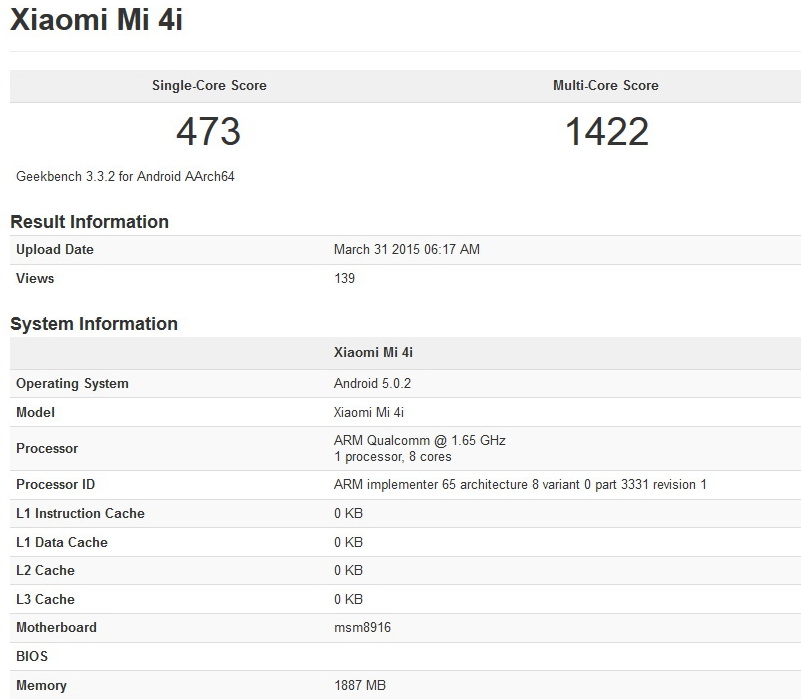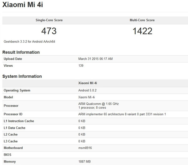 In der Datenbank der indischen IDA (Infocomm Development Authority of Singapore) sowie im Geekbench 3 sind erste Details und Spezifikationen zum Mi 4i aufgetaucht. Demnach wird das Xiaomi Mi 4i mit einem Qualcomm Snapdragon 615 Octacore-Prozessor, 2 GByte RAM und Android 5.0.2 als Mobile-OS debütieren. Weitere Informationen zur Ausstattung und zum Featureset des neuen Smartphones dürften in Kürze in den asiatischen Social-Media-Netzwerken die Runde machen.