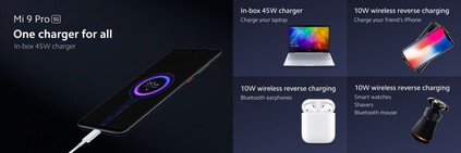 Abgesehen vom zusätzlichen 5G-Modem, hat Xiaomi vor allem die Stromzufuhr drastisch beschleunigt. Mit 40 Watt schnellem Fast-Charging soll der 4.000 mAh Akku des Mi 9 Pro in 48 Minuten voll geladen sein, neu ist auch ein 30 Watt schnelles kabellloses Laden, mit dem das Xiaomi-Flaggschiff in 69 Minuten vollständig aufgeladen ist. Praktischerweise liefert Xiaomi mit der neuen Pro-Version gleich auch ein 45 Watt Ladegerät aus, welches auch Notebooks wiw die Mi Notebook-Serie aufladen kann. Als Zubehör bietet Xiaomi zudem auch ein vertikales Ladepad/Smartphone-Ständer mit Kühlfunktion, welches 30 Watt liefern wird. Ähnlich wie beim Huawei Mate 30 hat Xiaomi Reverse Wireless Charging optimiert und kann kabellos ladbare Geräte an der Rückseite des Mi 9 Pro nun mit 10 Watt aufladen.
