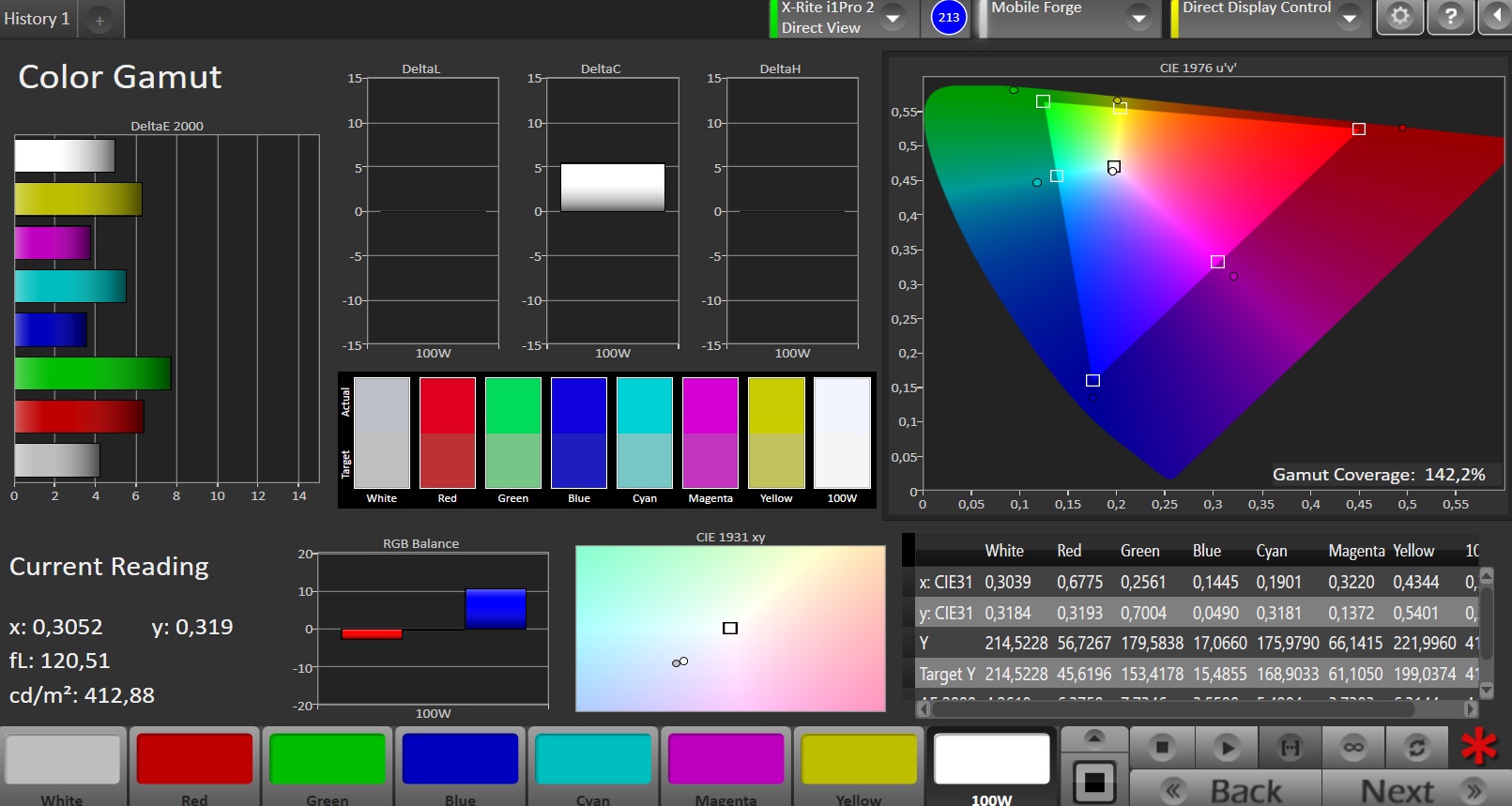 | Delta E Colorchecker * | 1.51 | 0.9 40% | 3.5 -132% | 3.5 -132% | 1.3 14% | 2.97 -97% | 3.78 -150% |