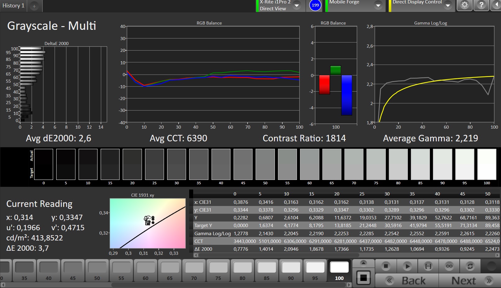 ΔE Greyscale Calman: 2.6 | ∀{0.09-98 Ø5}