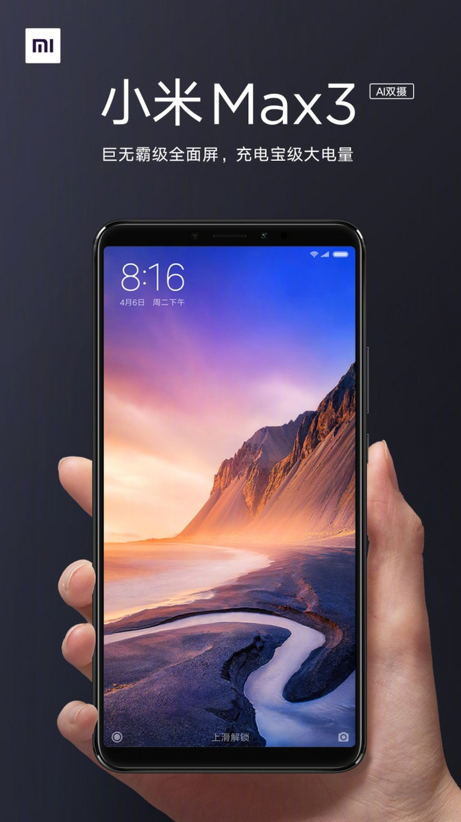 An der Rückseite ist eine Dual-Cam aus 12 Megapixel-Sensor mit 5 Megapixel Sidekick-Shooter installiert, erstere bietet 1,4 um große Pixel und eine F/1.9 Blende, 4K-Aufnahmen sind damit möglich. An der Front findet sich eine 8 Megapixel Selfie-Cam mit F/2.0 Blende. Das Dual-SIM-Phablet hat genügend Platz für einen 3,5 mm Kopfhöreranschluss an der Oberseite, USB-C für Quick Charge 3-fähige Ladegeräte findet sich an der Unterseite. Ach ja, Stereo-Lautsprecher mit doppeltem Verstärker gibt's auch. Mit Android 8.1 und MIUI-Oberfläche ist das Mi Max 3 in China ab morgen in drei Farbvarianten verfügbar.