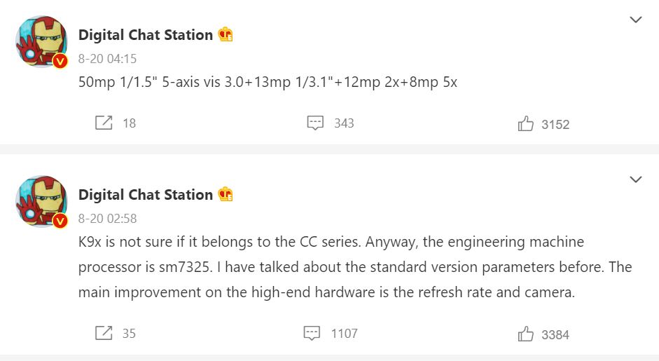 Als Mi CC 11 sollte ein neues günstiges Kamera-Phone eigentlich schon mit Mi Mix 4 und Mi Pad 5 an den Start gehen, doch daraus wurde bisher nichts. Der chinesische Blogger und Leaker Digital Chat Station vermutet allerdings, dass Xiaomi den Mi CC 11-Launch 2021 aber durchaus noch nachholen wird und nennt für die Mi CC 9-Nachfolger einige konkrete Specs (siehe auch Screenshot unten). Qualcomms SM7325 soll die Basis dieser Xiaomi-Phones werden, der interne Modellname steht für den Snapdragon 778G, der als Premium-Midrange-SoC genügend Rechenleistung knapp unter dem Flaggschiff-Niveau bieten soll.
