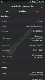 Anmerkung: Die unten angefügten AnTuTu Scores des OnePlus One wurden "On-the-fly" mit einem handelsüblichen OnePlus One Smartphone ohne spezielle Testvorbereitungen erzielt. Dieses One ist weder gerootet, noch übertaktet und entspricht vollständig dem Seriengerät "out of the box". Die AnTuTu Scores lassen sich allerdings nicht direkt mit den Ergebnissen anderer Scores aus Testberichten von Notebookcheck.com vergleichen, da das entsprechende "Test-Setup" nicht gemacht wurde.