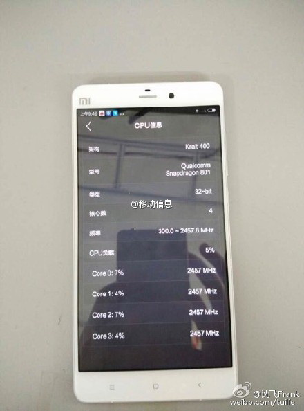 Laut den vorliegenden Screenshots erreichte das Xiaomi-Phone im AnTuTu Benchmark mit einem Snapdragon 801 von Qualcomm einen Score von 46866. Damit rangiert das Mi-Smartphone recht weit vorne im Scoring. So erreichte beispielsweise das Samsung Galaxy Note 4 mit Snapdragon 805 bei uns im Test mit dem AnTuTu Benchmark v5 einen Score von 47172. Das Apple iPhone 6 Plus lieferte 50360 Punkte. Das schnelle Google Nexus 6 schaffte hingegen sogar einen Score von 51812.