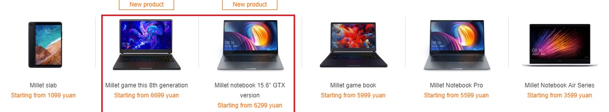 Es gibt hier 2 Versionen des Mi Notebook Pro GTX, eine mit Core i5-8250U und 8 GB RAM um 6.300 Yuan (797 Euro) sowie eine mit dem Core i7-8550U und 16 GB RAM um 7.600 Yuan (962 Euro). Hier noch eine Übersicht über alle aktuell von Xiaomi angebotenen Notebook-Varianten direkt von der chinesischen Webseite: