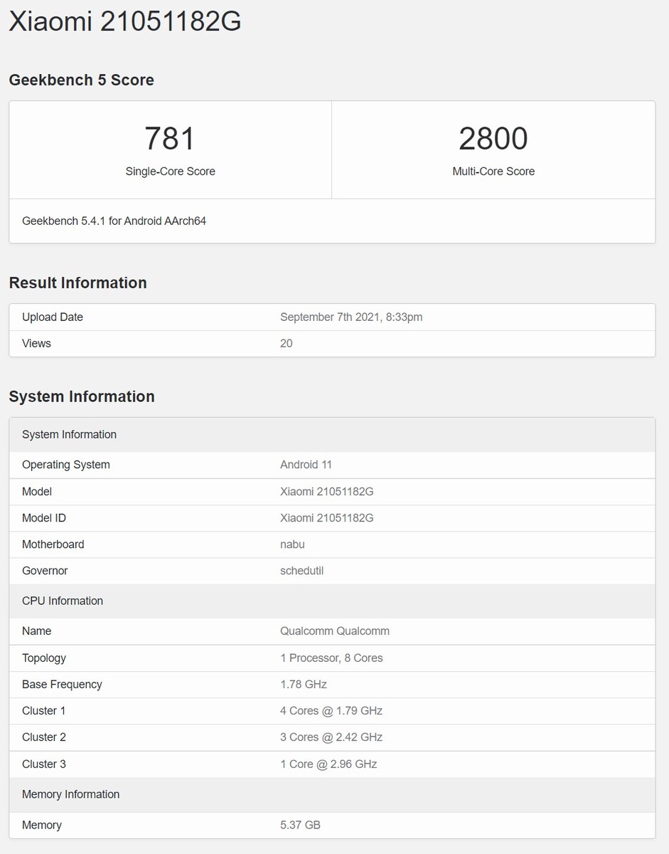 Xiaomi Pad 5 auch bereits auf Geekbench zu finden