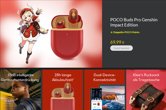 Die gemäß IPX4 gegen Spritzwasser geschützten Poco Buds Pro Genshin Impact Edition präsentieren sich als rund 5 Gramm leichte Soundstöpsel fürs Ohr im waschechten Genshin-Impact-Style. Passend zum Game gibt es Sprachnachrichten von Klee und einen mega-schicken Klee-Rucksack als Schutzhülle. Technisch bieten die Poco Buds eine intelligente Noise-Cancelling-Funktion inklusive Transparenzmodus und drei integrierten Mikrofonen, dynamische 9-mm-Komposit-Treiber für satten Sound, Zwei-Geräte-Konnektivität dank Bluetooth 5.2, Touchbedienung sowie eine Akkulaufzeit von bis zu 28 Stunden mit Ladecase.