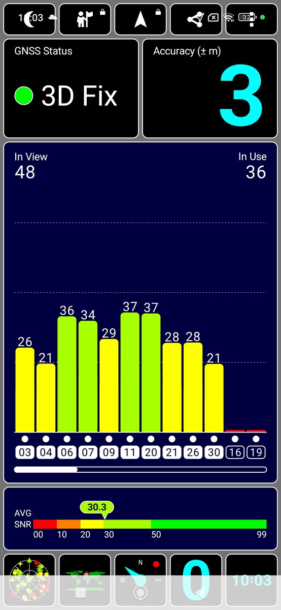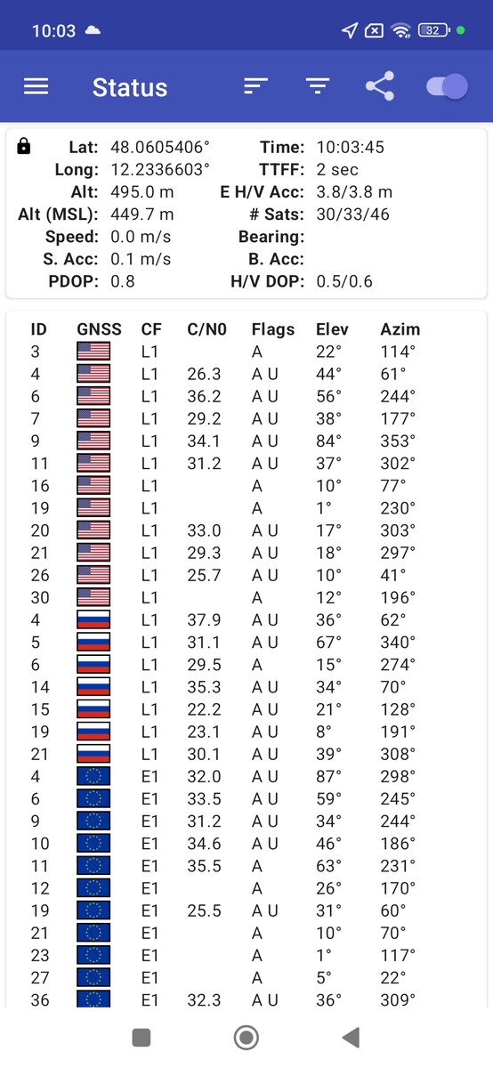 Im Freien werden wir recht schnell auf 3 Meter genau geortet. Dafür stehen alle wichtigen Satellitennetzwerke zur Verfügung, allerdings kein SBAS für noch höhere Genauigkeit.
