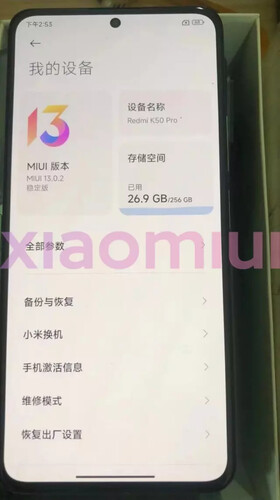 Zudem zeigt der Leak auch die Vorderseite des Smartphones mit der Selfie-Kamera in einem mittig am oberen Rand positionierten Punch Hole. Positiv ist, dass die Displayränder im Vergleich zum Redmi K40 Pro dünner auszufallen scheinen. Zu sehen ist zudem, dass wie erwartet MIUI 13 auf den 256 GB der abgebildeten Version vorinstalliert ist.
