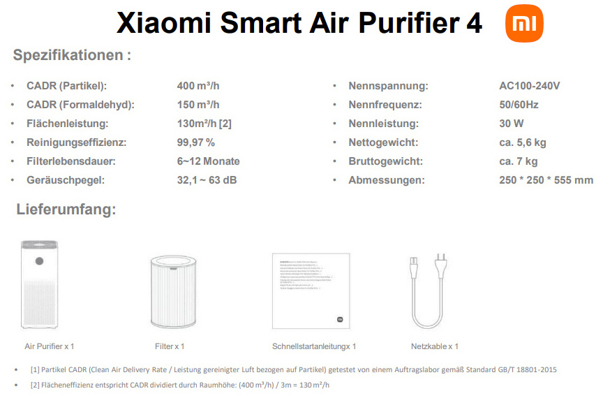 - Xiaomi Smart Air Purifier 4: 249,00 Euro (UVP)