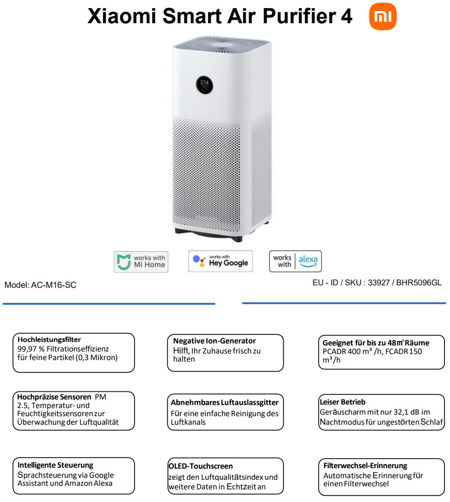 - Xiaomi Smart Air Purifier 4 Pro: 349,00 Euro (UVP)
