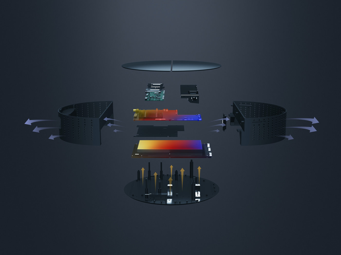 Das Panel wurde zwischen zwei Schichten Glas laminiert und mit einem dünnen Metallrahmen umrahmt, um für die nötige strukturelle Integrität zu sorgen. Natürlich gibt es in einem Fernseher auch Bauteile, die sich nicht transparent gestalten lassen, wie etwa das Mainboard oder die Lautsprecher. Dieses Problem hat Xiaomi gelöst, indem alle übrigen Bauteile in den etwas klobigeren Standfuß verfrachtet wurden.
