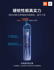 Der Xiaomi Mijia Mini-Sauger arbeitet mit einem bürstenlosen Hochleistungsmotor, der bis zu 88.000 Umdrehungen pro Minute schafft und damit eine Saugkraft von bis zu 13.000 Pa realisieren soll. Weitere konkrete Angaben zur technischen Ausstattung wie das genaue Gewicht, Akkuleistung oder Laufzeit des Mijia Handstaubsaugers macht Xiaomi bis dato nicht.