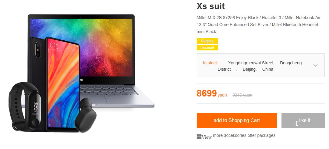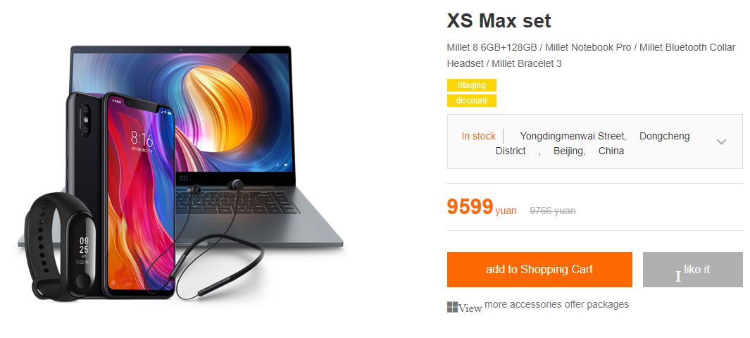 Ähnlich vielfältig sind die beiden höherpreisigen XS- und XS Max-Bundles. Statt eines iPhone Xs um 8699 Yuan erhält man bereits das Mi Mix 2S mit 8 GB RAM und 256 GB Speicher sowie das 13,3 Zoll Quad-Core Mi Notebook Air mit Mi Band 3 und Bluetooth-Headset. Wer bereit wäre 9599 Yuan für das iPhone Xs Max auszugeben, kann alternativ ein vollwertiges Mi 8-Phone mit 6 GB RAM und 128 GB Speicher sowie das Mi Notebook Pro wählen, auch hier wieder mit einem Mi Band 3 und einem Bluetooth-Headset, in dem Fall als Nackenbügel-Version. Die jeweiligen Produktseiten sind aktuell außerhalb Chinas offenbar schwer erreichbar, ein VPN hilft.