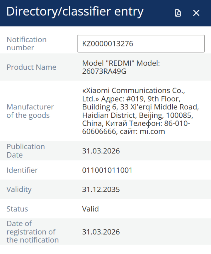 Daher wird vermutet, dass Xiaomi das Modell 26073RA49G später in diesem Jahr auf den Markt bringen wird. Zudem bestätigt die Modellnummer, dass es sich um ein globales Gerät handelt. Darüber hinaus deutet die Modellnummer darauf hin, dass Xiaomi das Gerät um Juli 2026 herum vorstellen könnte.