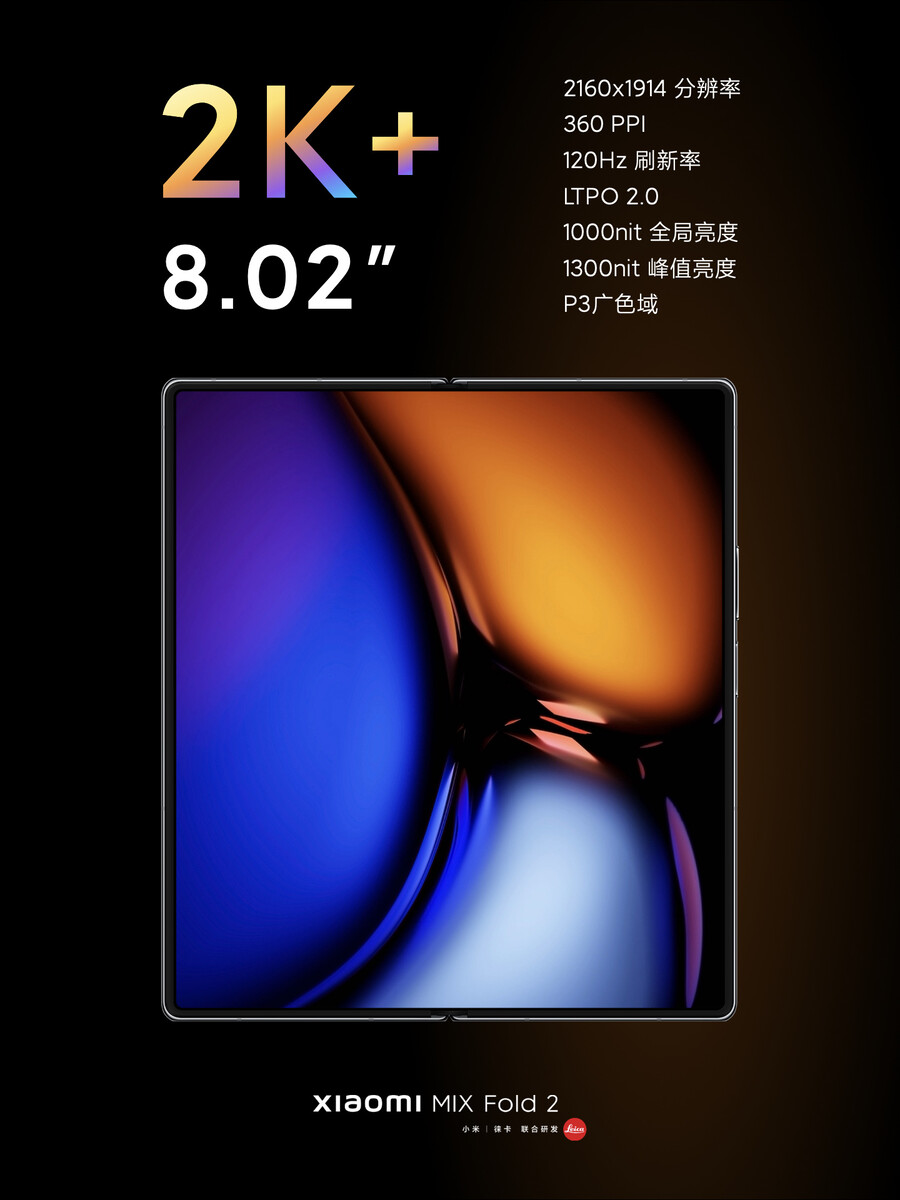 Das faltbare, 8,02 Zoll große LTPO-OLED-Display erreicht eine Auflösung von 2.160 x 1.914 Pixel, eine Spitzenhelligkeit von 1.300 Nits und eine Bildfrequenz von 120 Hz. Xiaomi greift auf ein Eco2-Panel von Samsung zurück, das auf einen dedizierten Polfilter verzichtet, wodurch der Bildschirm dünner wird. Flexibles Samsung Ultra Thin Glass (UTG) schützt das Display vor Kratzern.