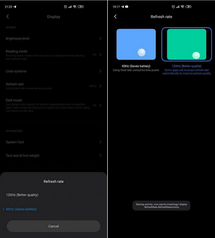 Darüber hinaus scheint der Smartphone-Hersteller aus China aber auch daran zu arbeiten, viele Bereiche leichter verständlich zu machen: So wird beispielsweise bei der Auswahl der Bildwiederholrate des Bildschirms nun statt einem kleinen Dropdown-Menü am unteren Bildschirmrand eine neue Seite geöffnet, in der man die Vorzüge der höheren Bildrate direkt demonstriert bekommt.