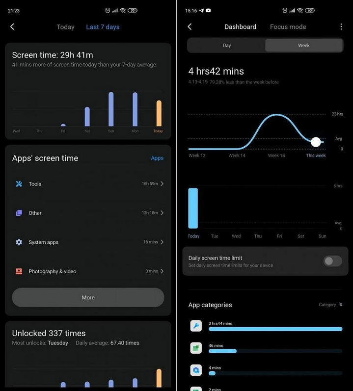 Im Vergleich zu MIUI 11 wird dabei schnell klar, dass die Benutzeroberfläche insgesamt dunkler wird, an vielen Stellen wird jetzt echtes Schwarz statt nur einem dunklen Grau eingesetzt. Gerade bei Smartphones mit OLED-Displays könnten diese Änderungen insgesamt also durchaus ein wenig Akku sparen.