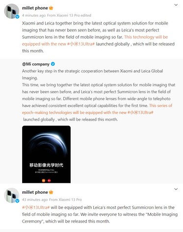 Xiaomi hält sich also an die Gerüchte rund um einen Start der Xiaomi 13 Ultra Warm-Up-Phase exakt am 6. April 2023, dem 13. Jahrestag der Unternehmensgründung. Überraschend hierbei ist allerdings dass die offizielle Ankündigung nicht nur im chinesischen Netzwerk Weibo sondern auch auf Twitter und damit international erfolgte, offenbar sieht der Zeitplan diesmal einen annähernd parallelen Launch vor. So soll das Xiaomi 13 Ultra noch im April launchen, die globale Verfügbarkeit "in den kommenden Monaten gegeben sein".