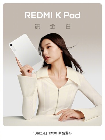 Xiaomi hat auf dem chinesischen sozialen Netzwerk Weibo offiziell bestätigt, dass beim Launch-Event am 23. Oktober neben dem Redmi K90 Pro Max auch eine neue Variante des Redmi K Pad vorgestellt wird, die in der Farbe "Golden White" ausgeführt wird. Bisher war das kompakte Tablet ausschließlich in Violett, Grün und Dunkelgrau erhältlich. Die neue Variante setzt auf eine Rückseite, die in einem warmen Grauton ausgeführt wird.