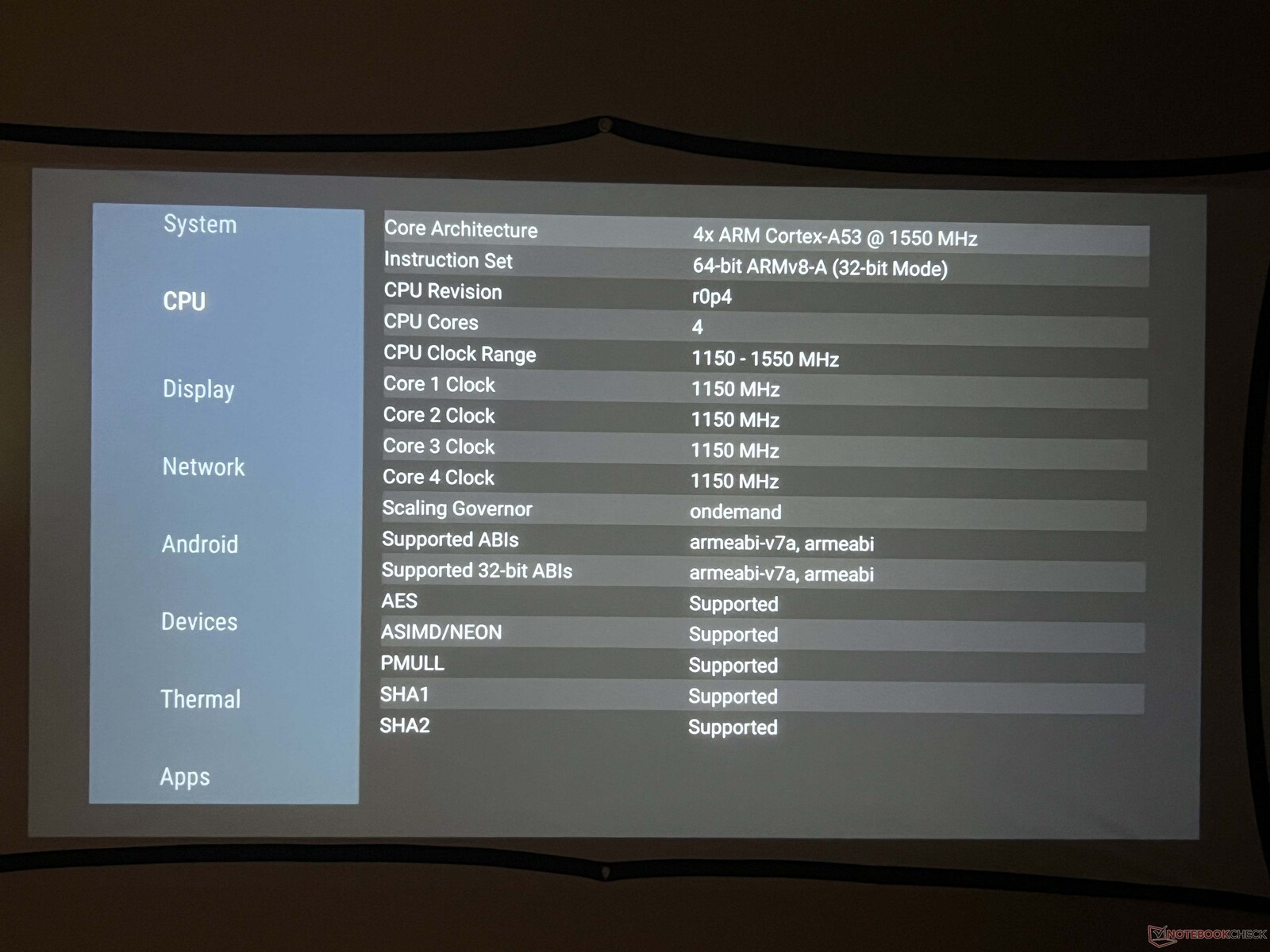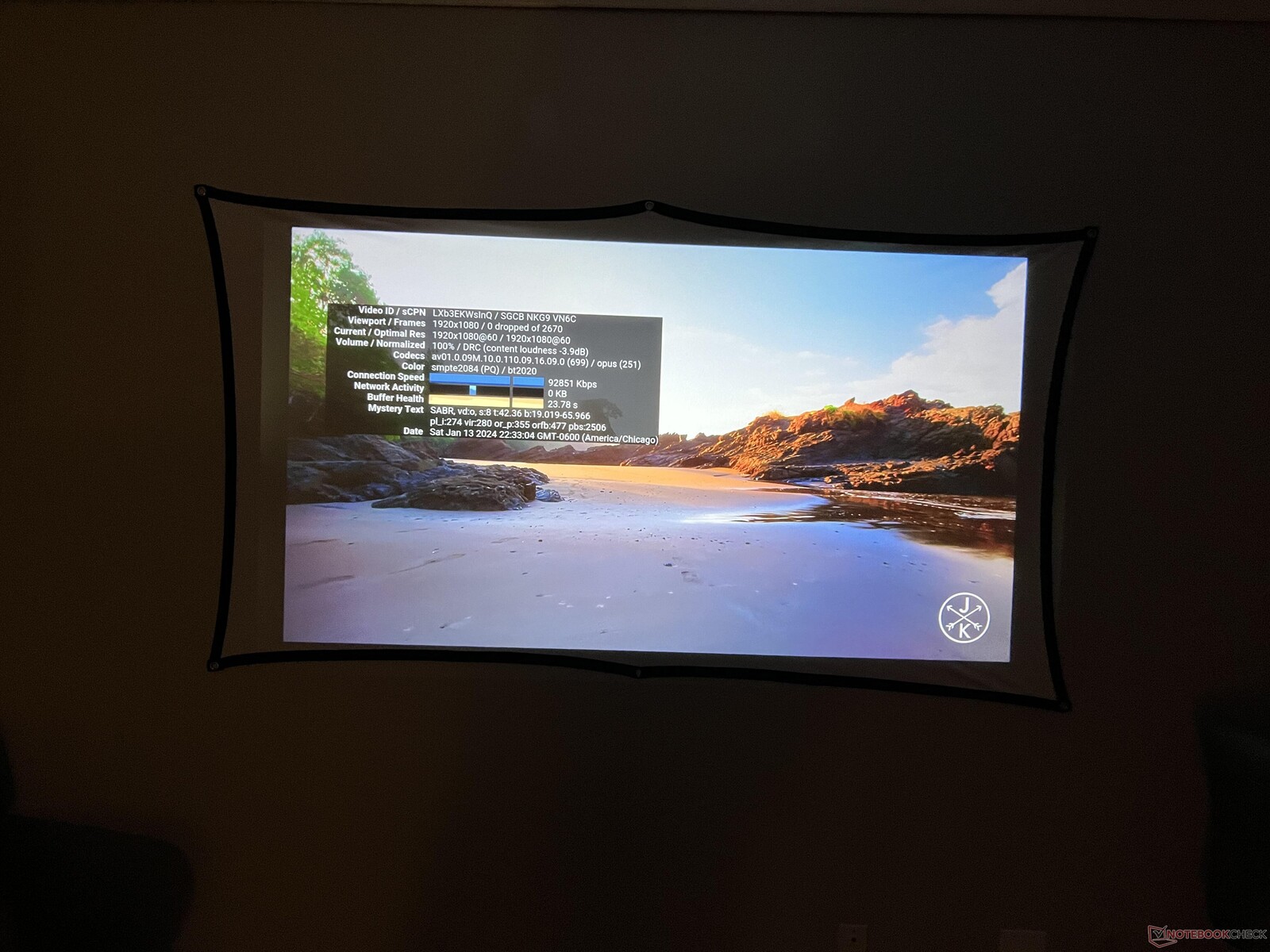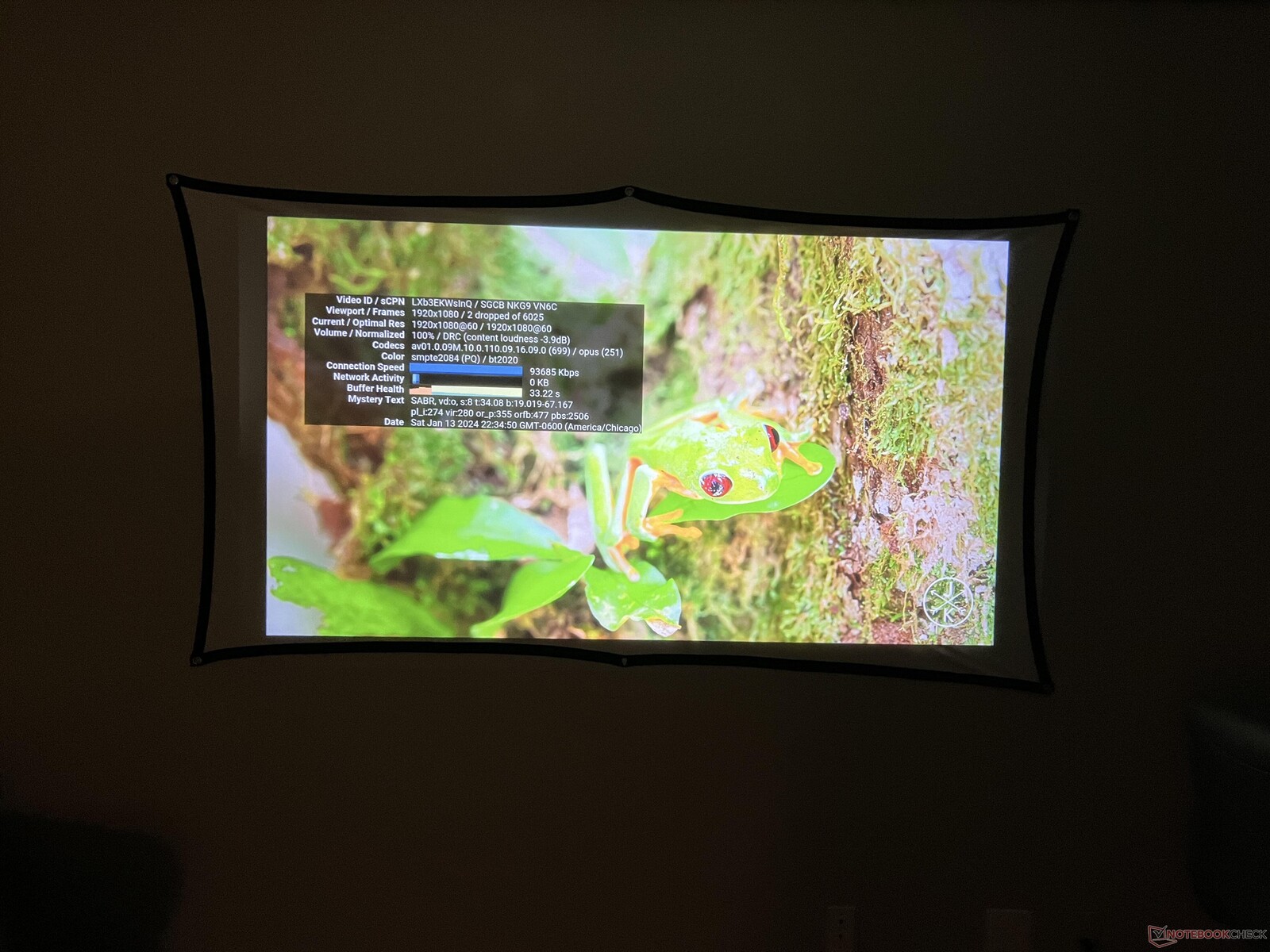 Seltsamerweise gibt es ein gewisses Maß an "Backlight Bleed", das sich als helle Flecken am Rand des Bildes zeigt. Wenn das Bild aufgrund von Trapezverzerrungen skaliert wird, ist außerdem ein schwarzer Kasten um das Bild herum zu sehen, der den Rest des echten projizierten Bildes offenbart.