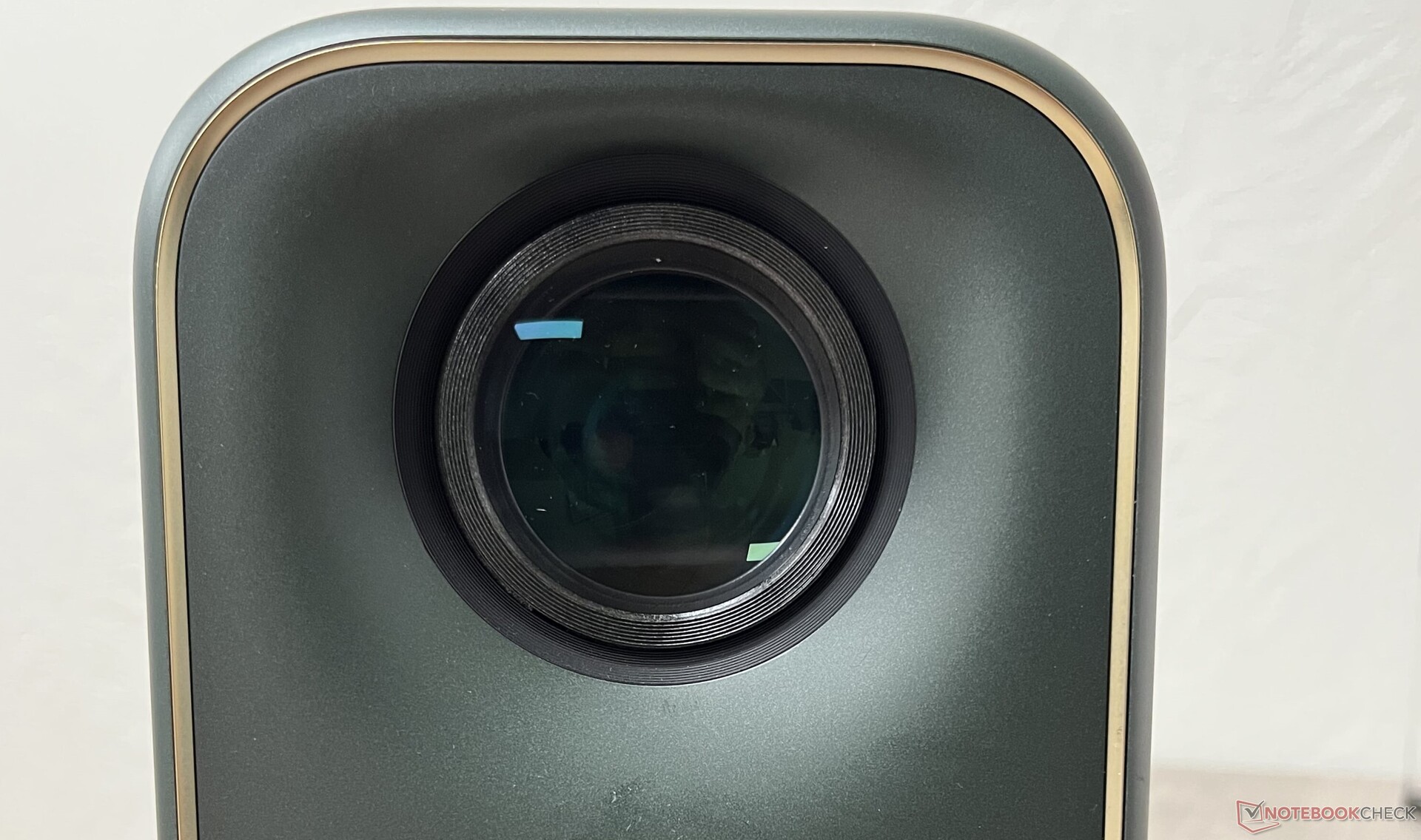 Die Verarbeitungsqualität ist gut. Das Kunststoffgehäuse fühlt sich glatt und robust an, und die Nähte sind gleichmäßig und dicht. Der Page One hat ein gutes Gewicht: Er fühlt sich in der Hand dicht und stabil an, ist aber nicht schwer genug, um ein Stativ zu beanspruchen. Die Befestigung des Projektors auf einem Stativ ist dank des Gewindelochs in der Mitte der Unterseite ein Kinderspiel.