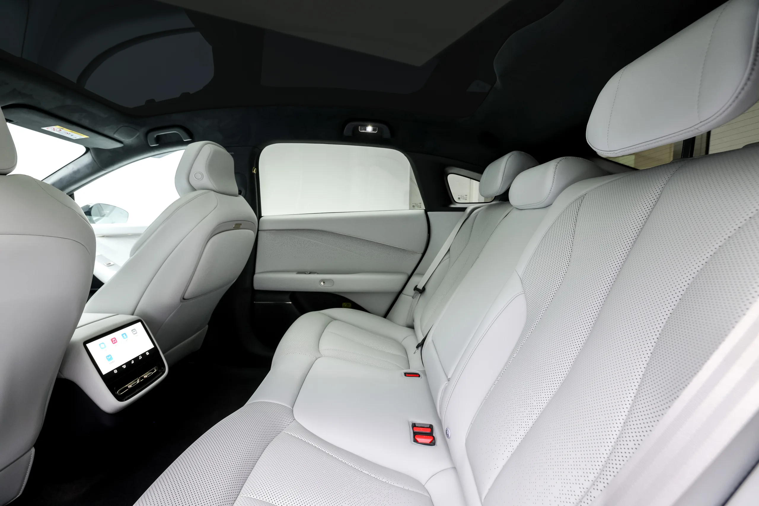 Die Aufpreisliste beim Xpeng P7 Plus ist extrem kurz. Es gibt lediglich andere Lackfarben (800 Euro) und eine Anhängerkupplung (1.190 Euro, Zuglast 1.500 kg). Der Rest ist Serie: 15,6-Zoll-Screen, Head-up-Display, Sitzheizung und Belüftung vorne sowie ein Panoramadach. Ab der Long-Range-Version gibt es auch hinten Massage-Sitze und einen eigenen 8-Zoll-Screen für die Fondpassagiere.