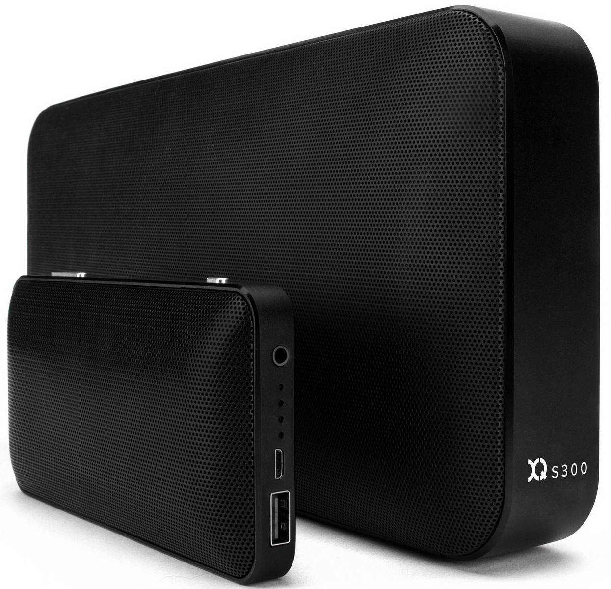 Sein großer Bruder S300 präsentiert sich mit Abmessungen von 300 x 168,8 x 56 Millimetern und bringt es mit seinem Bluetooth-Stereo-Speaker-System auf insgesamt 6 Stunden Laufzeit im Batteriebetrieb. Wie der S30 lässt sich auch der Xqisit S300 Bluetooth-Speaker als Powerbank nutzen. Der S300 verfügt über eine höhere Kapazität von 5.000 mAh.