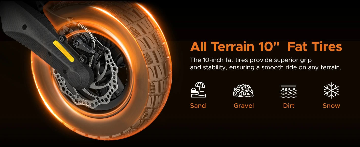 Ausgestattet ist der E-Scooter mit 2,75 Zoll breiten und 10 Zoll großen Reifen, womit sich eine gewisse Gängigkeit im Gelände ergeben dürfte. Eine Federung ist vorhanden, etwa auf Kopfsteinpflaster kann das dem Fahrkomfort zuträglich sein. Geworben wird durch die Federung auch eine bessere Stabilität - diese ist bei E-Scootern insgesamt ein nicht zu unterschätzendes Thema. Vorne und hinten kommen Scheibenbremsen zum Einsatz. Der Akku bietet eine Kapazität von 648 Wh, angegeben wird eine maximale Reichweite von 50 Kilometern. Die tatsächlich erzielbare Reichweite ist dabei aber beispielsweise von der gewählten Geschwindigkeit abhängig. Der Engwe Y400 ist faltbar und bringt 25 Kilogramm auf die Waage.