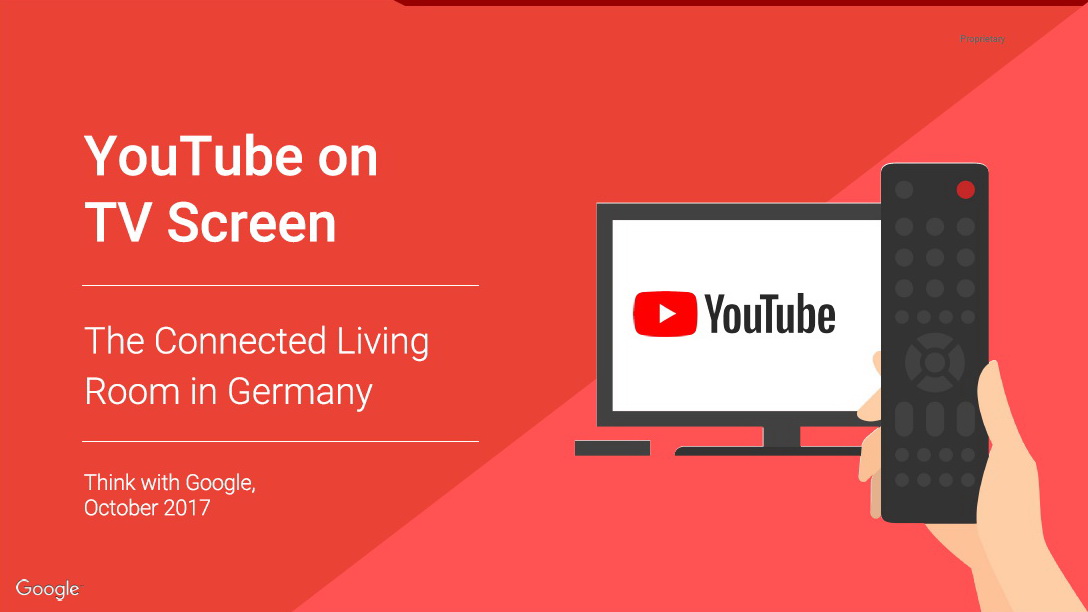 YouTube hat im Rahmen des diesjährigen YouTube Festival 2017 Events die Ergebniss aus der neuen Studie "YouTube in the Livingroom" präsentiert. Die im Auftrag von Ipsos Connect Deutschland durchgeführte Untersuchung belegt: Die Sehdauer von YouTube auf TV-Bildschirmen in Deutschland hat sich im Vergleich zum Vorjahr verdoppelt. Damit liegt Deutschland im globalen Ranking auf Platz 6, in Europa sogar auf dem zweiten Platz.