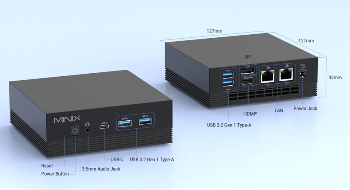 Minix bietet den Z100 auch in einer aktiv gekühlten Variante an. Diese bringt dementsprechend einen Lüfter mit und ist somit nicht mehr komplett lautlos, bei längerer Höchstlast könnte sich so eine bessere Leistungsentfaltung ergeben. Das 127 x 127 Millimeter große und 43 Millimeter hohe PC-System bringt einen Intel Core N100 mit. Die maximale Turbo-Taktrate des Prozessors wird mit 3,4 GHz angegeben. Beim N100 handelt es sich um einen im letzten Jahr eingeführten Prozessor, welcher allerdings nicht besonders schnell ist. Der Z100 Aero dürfte sich so eher für weniger anspruchsvolle Aufgaben wie typische Office-Tätigkeiten eignen.