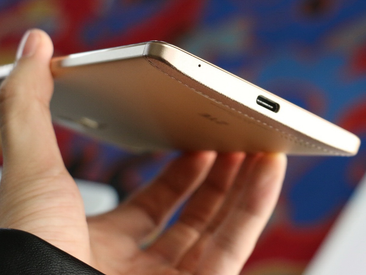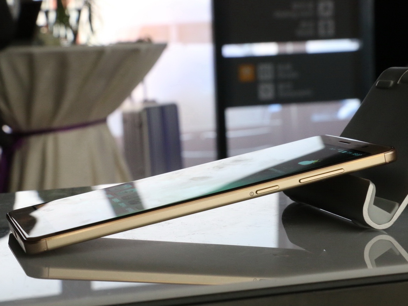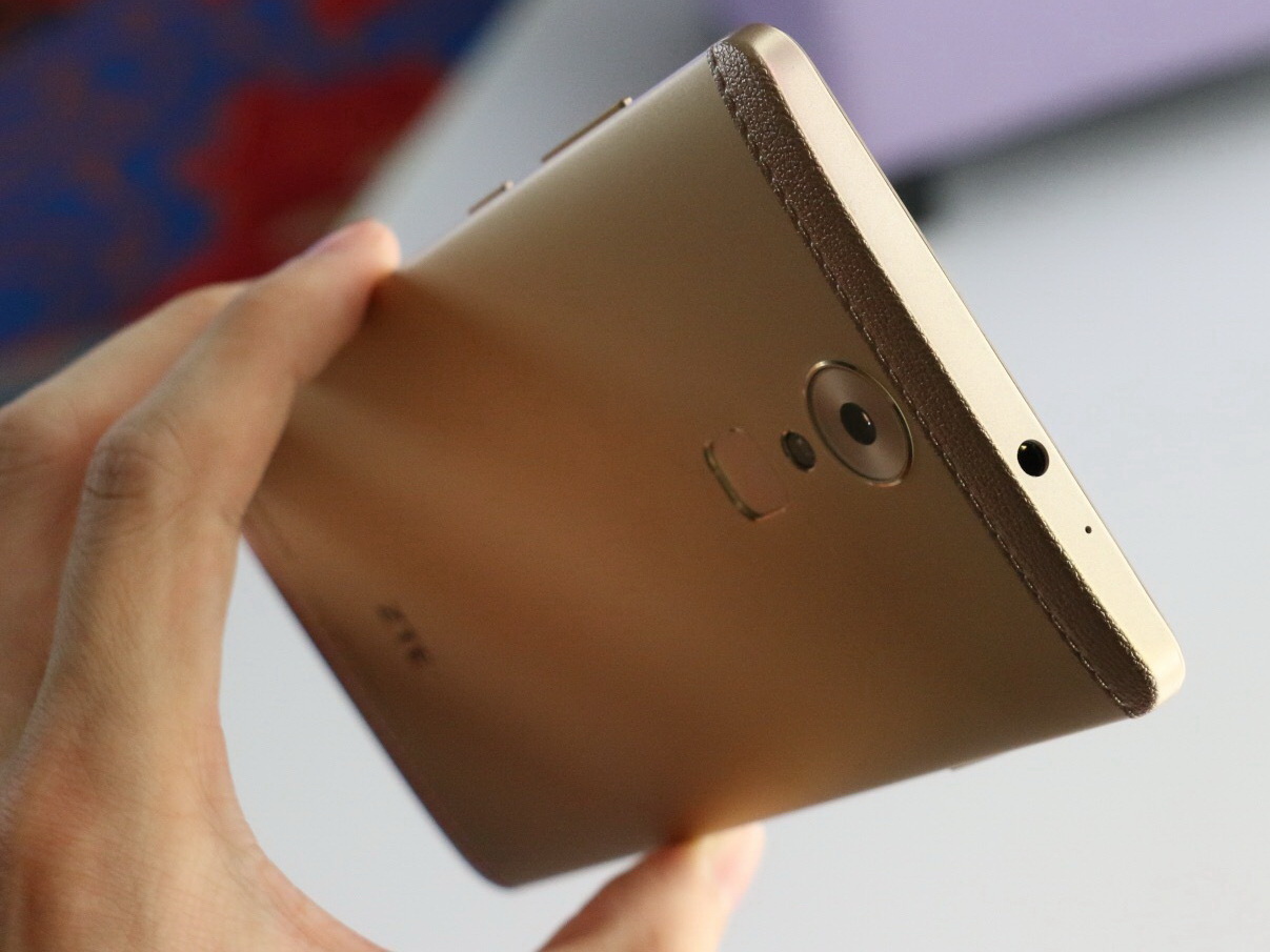 So bedient sich das ZTE Axon Max nahezu der gleichen Farben- und Formensprache wie das Konkurrenzmodell Mate 8 von Huawei: Gold und eine an der Rückseite des wuchtigen Smartphones mittig platzierte und optisch abgesetzte Kameraluke, mit einem darunter integrierten Fingerabdrucksensor.
