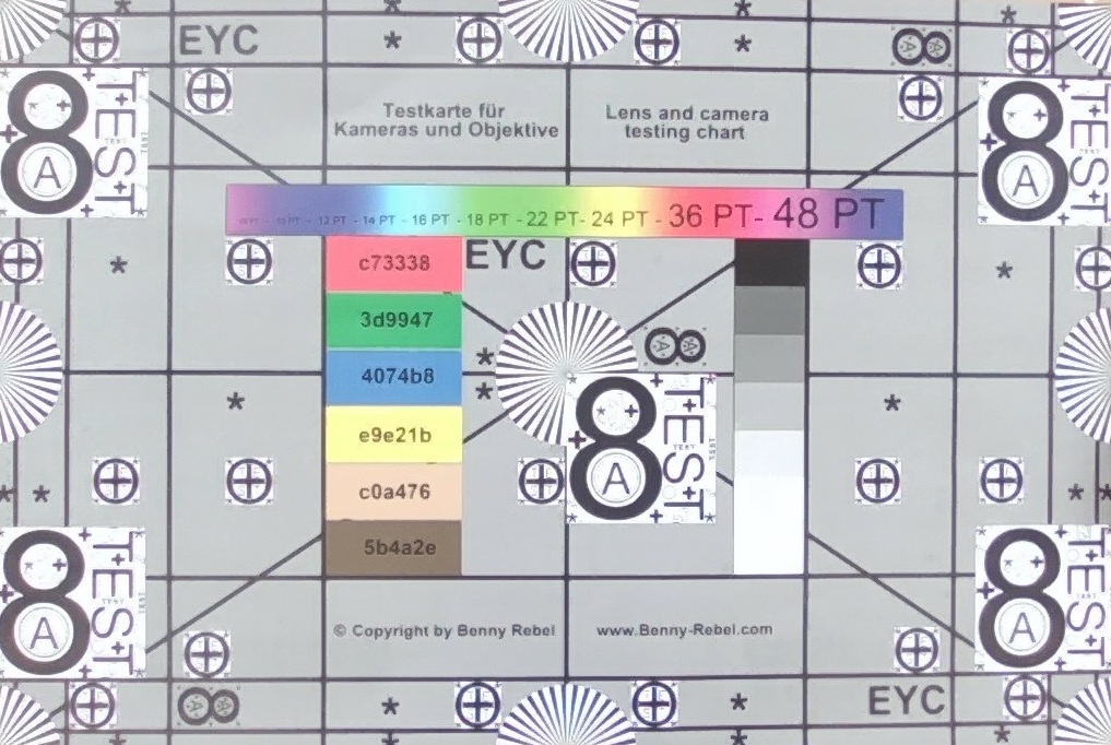 | Colorchecker dE 2000 max. * | 5.49 | 4.76 13% | 7.61 -39% | 5.25 4% | 7.24 -32% |