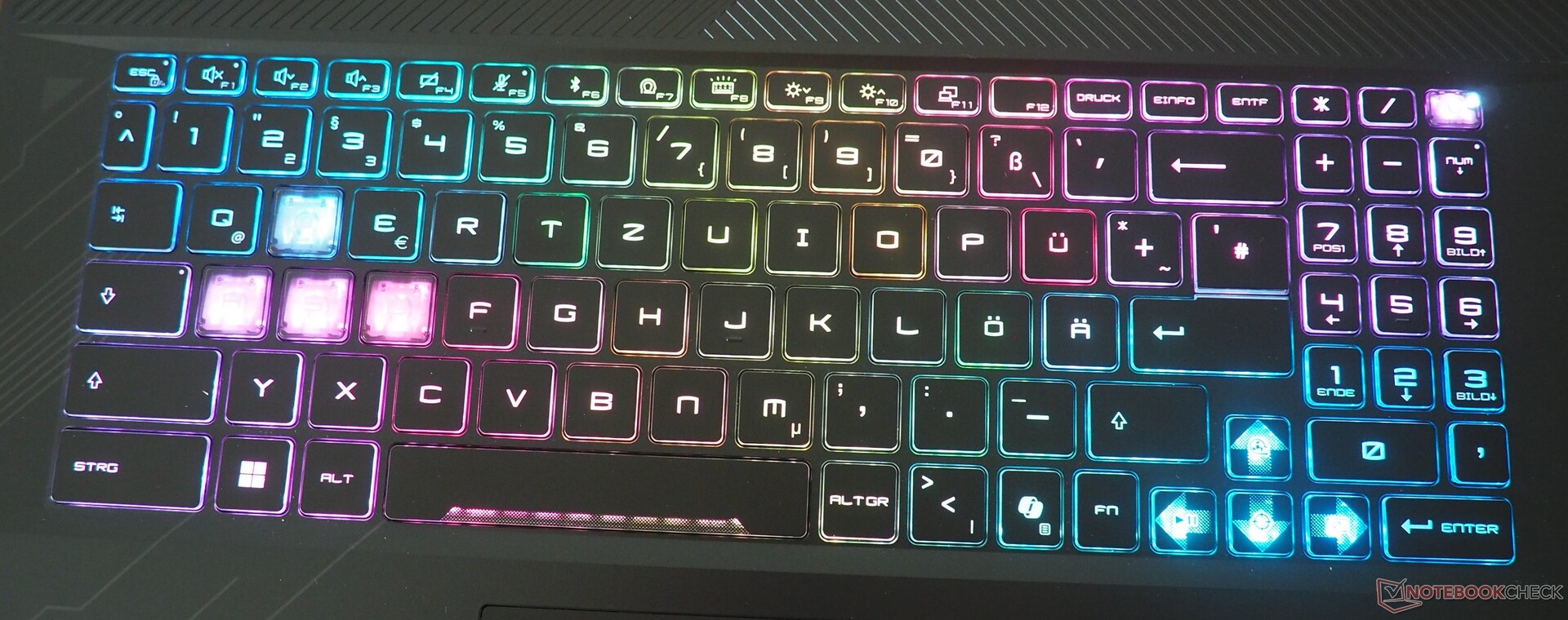 Das Gehäuse hinterlässt derweil einen guten Eindruck, sei es nun äußerlich (Qualität, Stabilität etc.) oder unter der Haube (je zwei RAM- & SSD-Slots). Gleiches gilt für die Eingabegeräte, wobei man sich als Käufer erst einmal an das eigenwillige Keyboard-Layout gewöhnen muss. Dafür kommen Beleuchtungsfans aufgrund der 24 RGB-Zonen voll auf ihre Kosten. Minuspunkte gibt es unter anderem für die maue Webcam, die bescheidenen Lautsprecher und die geringe Akkulaufzeit.