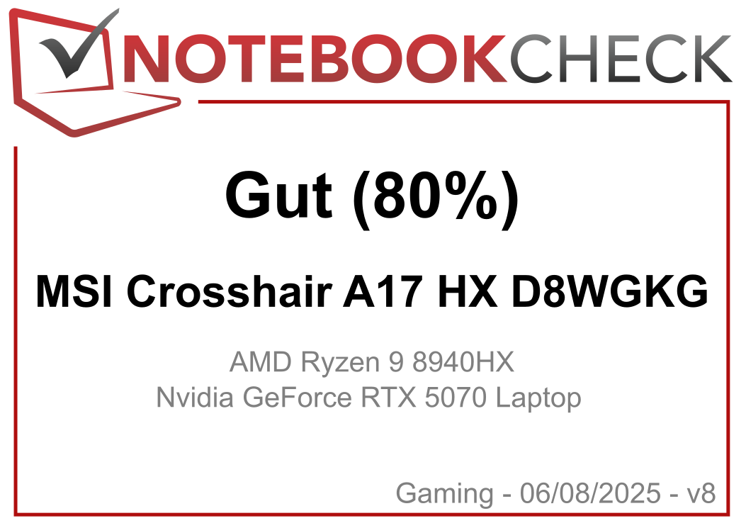 Das getestete MSI Crosshair A17 HX D8WGKG mit Ryzen 9 8940HX und GeForce RTX 5070 ist für rund 2.000 Euro erhältlich (z. B. bei Amazon).