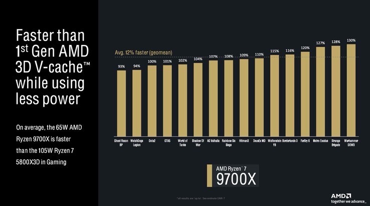 Der AMD Ryzen 7 9700X soll einen vergleichbaren Vorsprung gegenüber dem Intel Core i7-14700K erzielen. Der Chip soll im Schnitt eine 12 Prozent bessere Gaming-Performance als der Ryzen 7 5800X3D erzielen, und das bei einer 40 Watt niedrigeren TDP.
