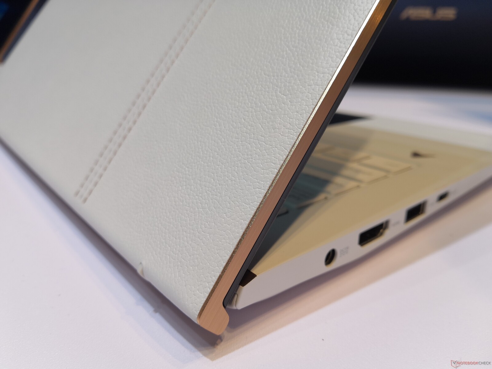 Das Gehäuse kommt mit einem Cover aus weißem Leder, das Logo besteht aus einer Legierung aus 18 Karat Roségold. Die Designer bei Asus haben hier aber Stil bewiesen, denn das Notebook sieht trotz den teuren Upgrades schlicht und elegant genug aus, um es in Meetings verwenden zu können, ohne ein schlechtes Gewissen für verschwenderischen Konsumerismus haben zu müssen.