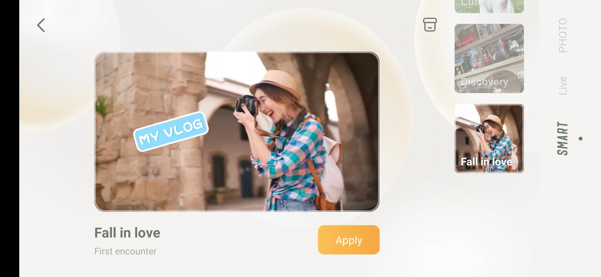 Zuletzt gibt es noch den interessanten Smart-Modus. Hier gibt es eine Reihe an Gimbalbewegungs-Vorlagen anhand von Beispielfilmen. Wählt man eine Vorlage aus, so vollführt der Gimbal in der aktuellen Situation genau die Bewegungen, welche im Beispielvideo zu sehen sind, er überträgt die Bewegungen also in die Nutzersituation.