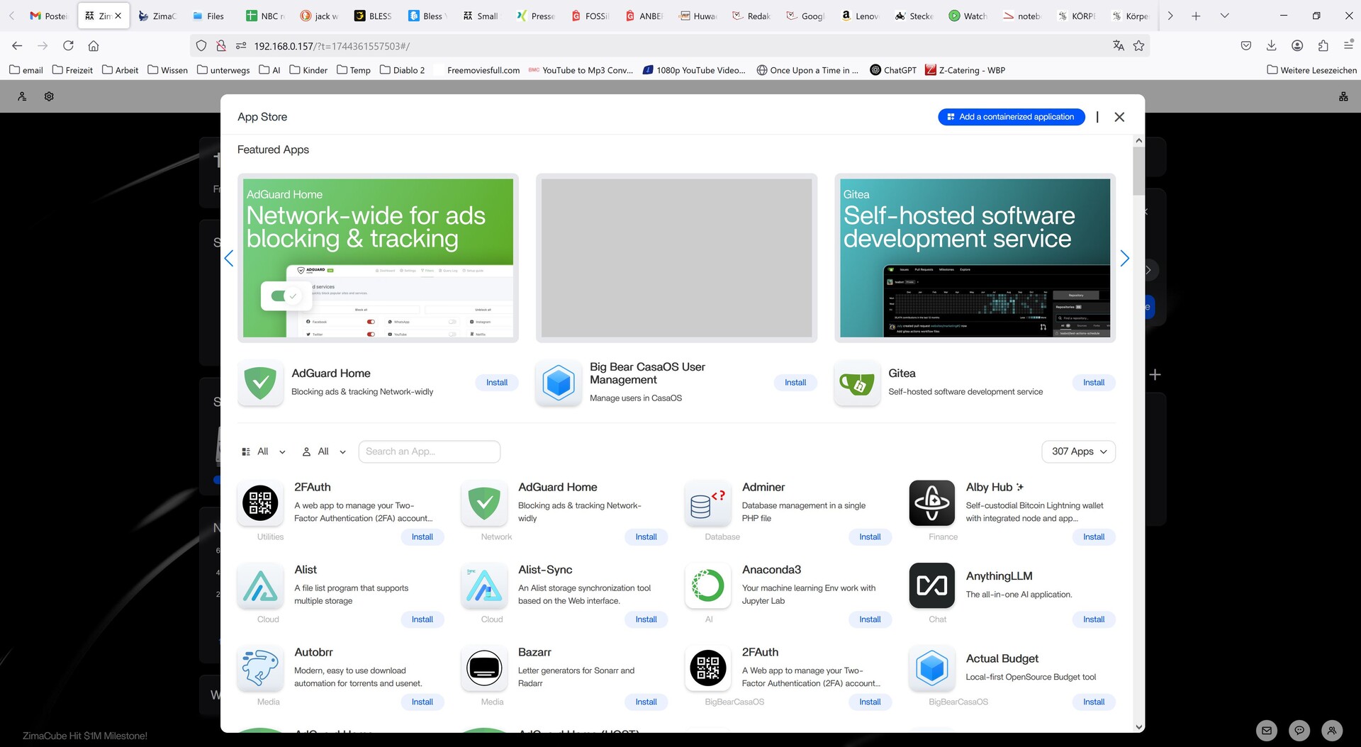 Beinahe der größte Unterschied zum ersten ZimaBoard ist in der Praxis jedoch das Betriebssystem: ZimaOS hat mehr Funktionen als CasaOS, bleibt aber ebenso zugänglich. So können wir über den umfangreichen Docker App Store wieder Adguard, Jellyfin, NextCloud, Home Assistant und Co. per 1-Click installieren. Beim Filemanagement hat ZimaOS ordentlich zugelegt. Angeschlossene Speicherlaufwerke lassen sich zu RAID-Verbünden zusammenschließen, Dateien und Ordner per Link für Freunde freigeben und mehr. So wird das Teilen von Dateien übers Internet nochmals einfacher.
