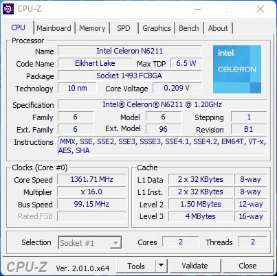 | Durchschnittliche Intel Celeron N6211 (n=1) | |