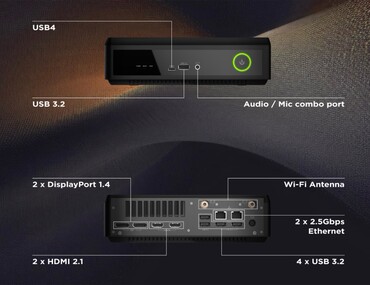 Die ZBox Magnus kann mit bis zu drei M.2-SSDs bestückt werden. Zotac bewirbt darüber hinaus eine breite Anschluss-Auswahl, inklusive fünfmal USB-A, zweimal HDMI 2.1, zweimal DisplayPort 1.4, zweimal 2,5 Gbit/s Ethernet und einem einzelnen USB-C-Anschluss, der zwar USB 4 unterstützt, der aber an der Vorderseite des Mini-PCs sitzt. Wi-Fi 7 und Bluetooth 5.4 gehören zur Standardausstattung.