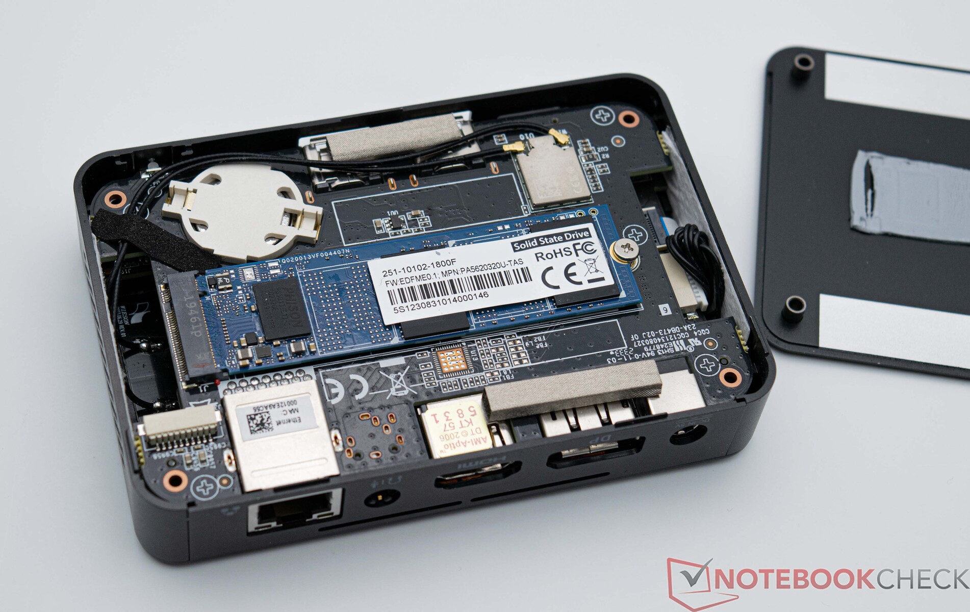 Rein leistungstechnisch kann sich der Zotac Zbox pico PI430AJ nur in einigen Multi-Thread-Anwendungen behaupten. Die fest verbauten 8-GB-RAM fallen nicht sehr üppig aus und könnten schlussendlich die Kaufentscheidung beeinflussen. Ob Zotac hier auch eine Option mit mehr Arbeitsspeicher anbieten wird, ist derzeit bislang nicht bekannt. Gut hingegen ist der Einsatz der NVMe-SSD, die sich auch im Nachgang problemlos tauschen lässt. Zudem konnten wir im Test keinen Leistungsverlust unter Dauerlast verzeichnen. Obwohl der Zotac Zbox pico PI430AJ Mini-PC ohne Lüfter daherkommt, arbeitet der Office-PC nicht lautlos. Unter Last ist das Gerät dennoch hörbar und auch die Gehäusetemperaturen sind mit bis zu 70 °C sehr hoch.
