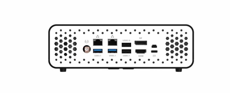 Die Zbox Nano unterstützt insgesamt drei 4K-Monitore, die über HDMI 2.0b, über DisplayPort 1.4 und über Thunderbolt 4 (USB-C) angeschlossen werden können, wobei der Thunderbolt-Port an der Vorderseite sitzt, zusammen mit einem SD-Kartenleser, Kopfhörer- und Mikrofon-Anschlüssen und einem USB-A-Port. Auf der Rückseite finden sich vier weitere USB-A-Ports sowie zwei 2,5 Gbit/s Ethernet-Anschlüsse. Die Stromversorgung erfolgt über ein 65 Watt USB-C PD Netzteil.