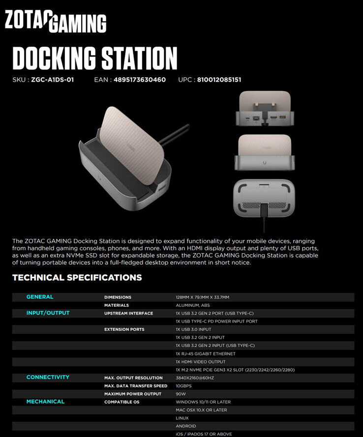 Zotac hat noch keine Details zum Preis und zur Verfügbarkeit der neuen Docking-Station für den Zotac Zone und andere Gaming-Handhelds bestätigt. Nähere Details zum Dock sind auf der offiziellen Produktseite zu finden.