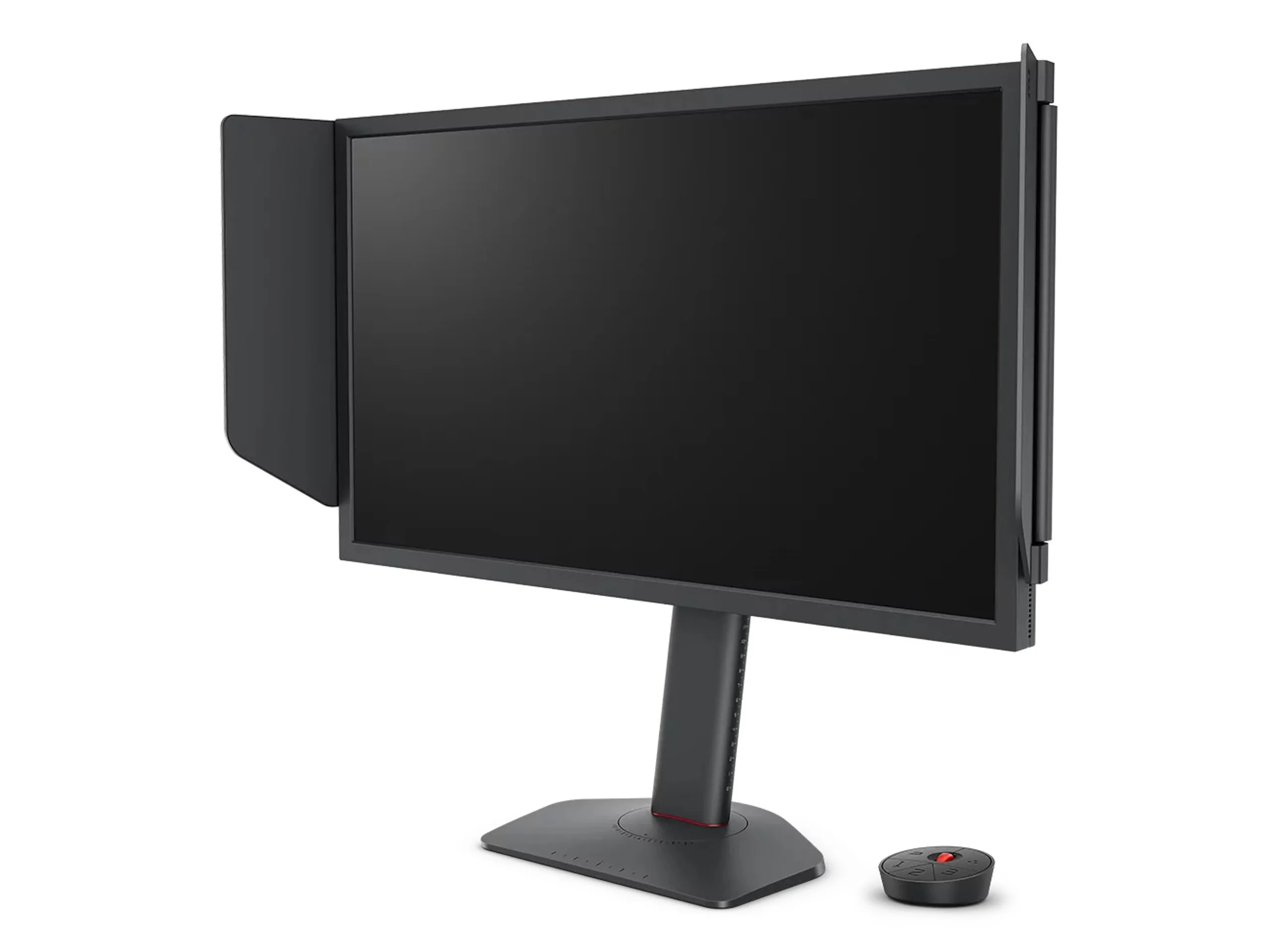 Es kommt ein Fast-TN-Panel zum Einsatz. Die typische Helligkeit wird mit 320 cd/m² angegeben, das typische Kontrastverhältnis beziffert BenQ auf 1.000:1. Beworben wird nicht nur die hohe Bildwiederholfrequenz, sondern auch die besonders scharfe Darstellung von sich bewegenden Bildern. Im kompetitiven Umfeld und bei schnellen Shootern könnte dies wahrscheinlich das Zielen erleichtern, da die Umrisse korrekt und nicht verzerrt dargestellt werden. Das Fast-TN-Panel soll blendendes Weiß viel schneller verblassen lassen können - es lohnt sich durchaus, die von BenQ auf der Produktseite eingebundenen Videos zu betrachten, welche einen Eindruck mindestens in die Problemstellungen bei der Darstellung von schnellen Multiplayer-Shootern geben. Mithilfe von DyAc 2 soll sich Bewegungsunschärfe reduzieren lassen. Etwa ein USB-Hub fehlt komplett, so kommt zu den Bildeingängen nur noch ein Kopfhörerausgang. Der Standfuß erlaubt die Verstellung in der Höhe um ganze 115 Millimeter, das Schwenken und Neigen ist aber ebenfalls möglich. Eine externe Bedieneinheit ist vorhanden.