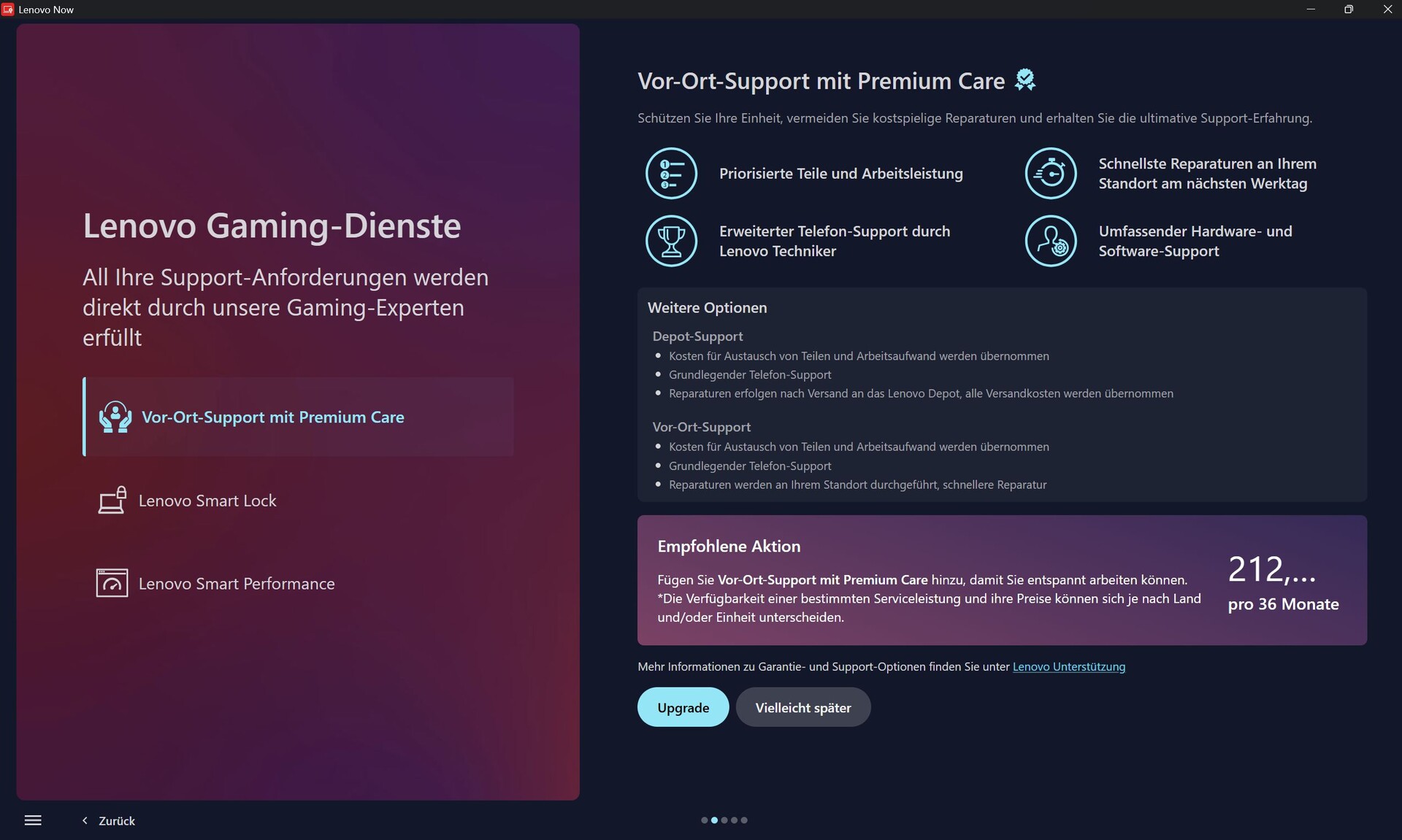 In Vantage wird man mit Eigenwerbung zu Sicherheitslösungen, Garantieerweiterungen und Co belästigt. Auch Umfragen will man uns aufdrücken, als ob Lenovo durch die gesammelten Daten nicht genug Feedback hätte.