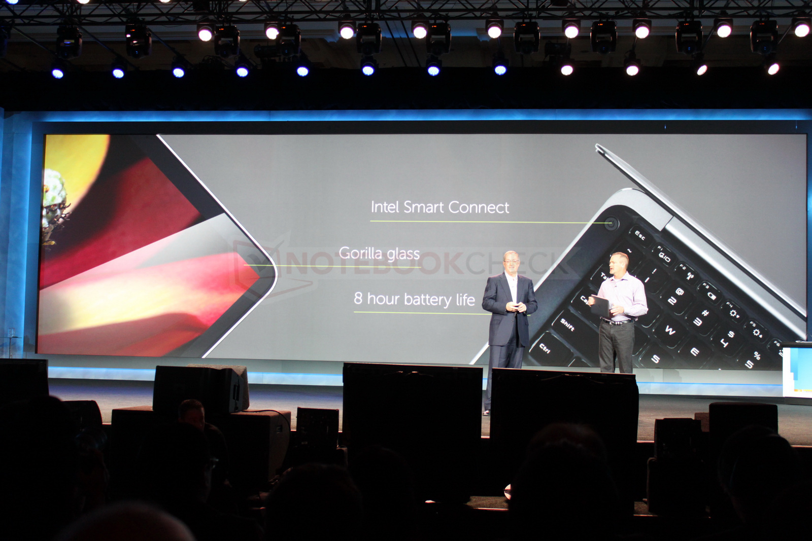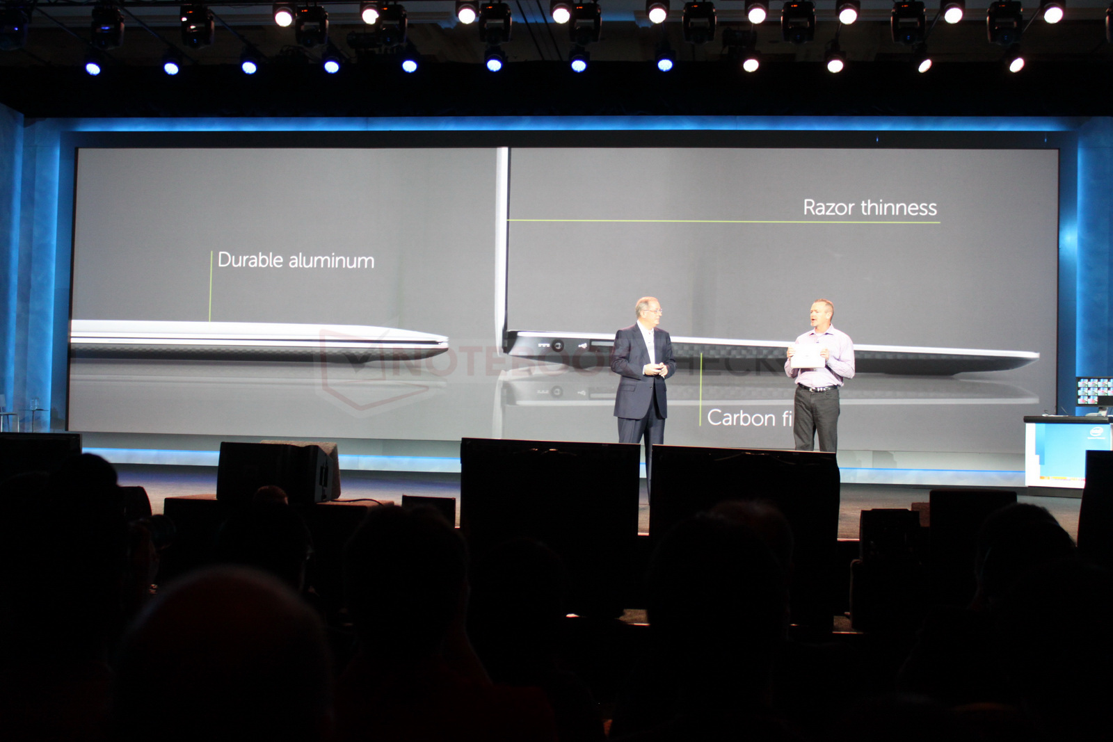 Kurz angeführt: Intels Tablet-Referenzdesign, das ohne Lüfter auskommen muss, dafür aber mit Windows 8 und Atom-SoC arbeiten darf. Erneut und in epischer Breite kam Intel dann bei seinem Schwerpunktthema für 2012 an - Ultrabooks. Mehr als 60 Modelle der Ultrabooks sollen dieses Jahr auf den Markt kommen. Dell durfte sogar sein erstes Ultrabook XPS 13 auf der Intel-Keynote vorstellen.